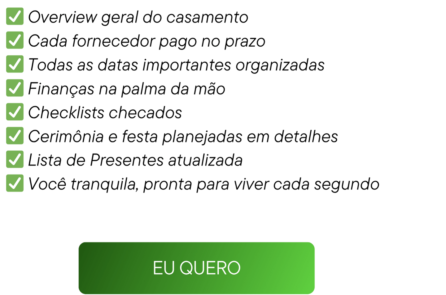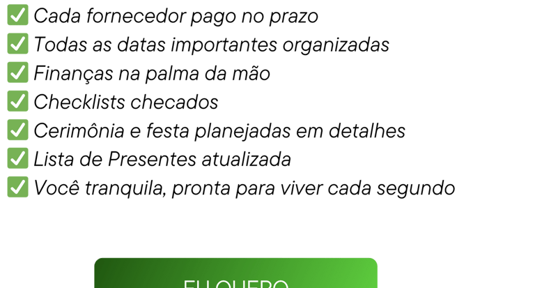 Todo o método deste programa deriva de protocolos profissionais usados em casamentos, agora adaptados para que qualquer noiva tenha acesso ao mesmo nível de organização e segurança que antes só era possível com assessoria de alto padrão
