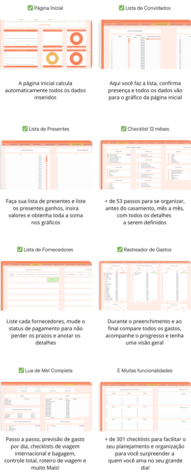 A planilha mais amada entre as noivas com + de 8 seções de detalhadas para se organizar