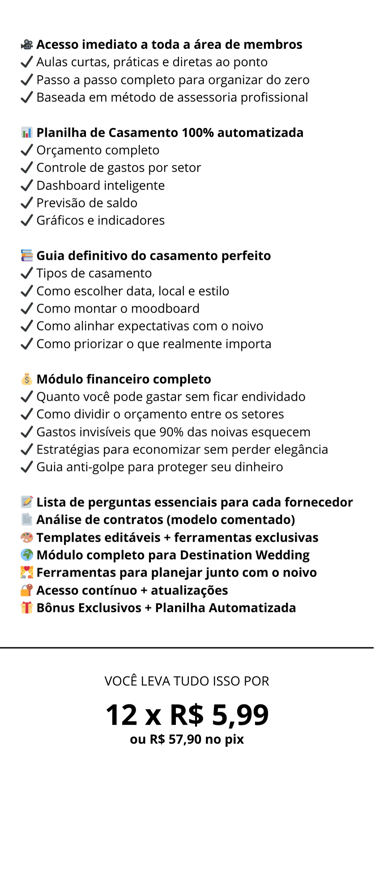 Mais que uma planilha: Uma assessoria virtual completa que te ensina passo a passo a organizar o seu casamento do jeito mais seguro, simples e inteligente, 100% online, acessível e no seu ritmo